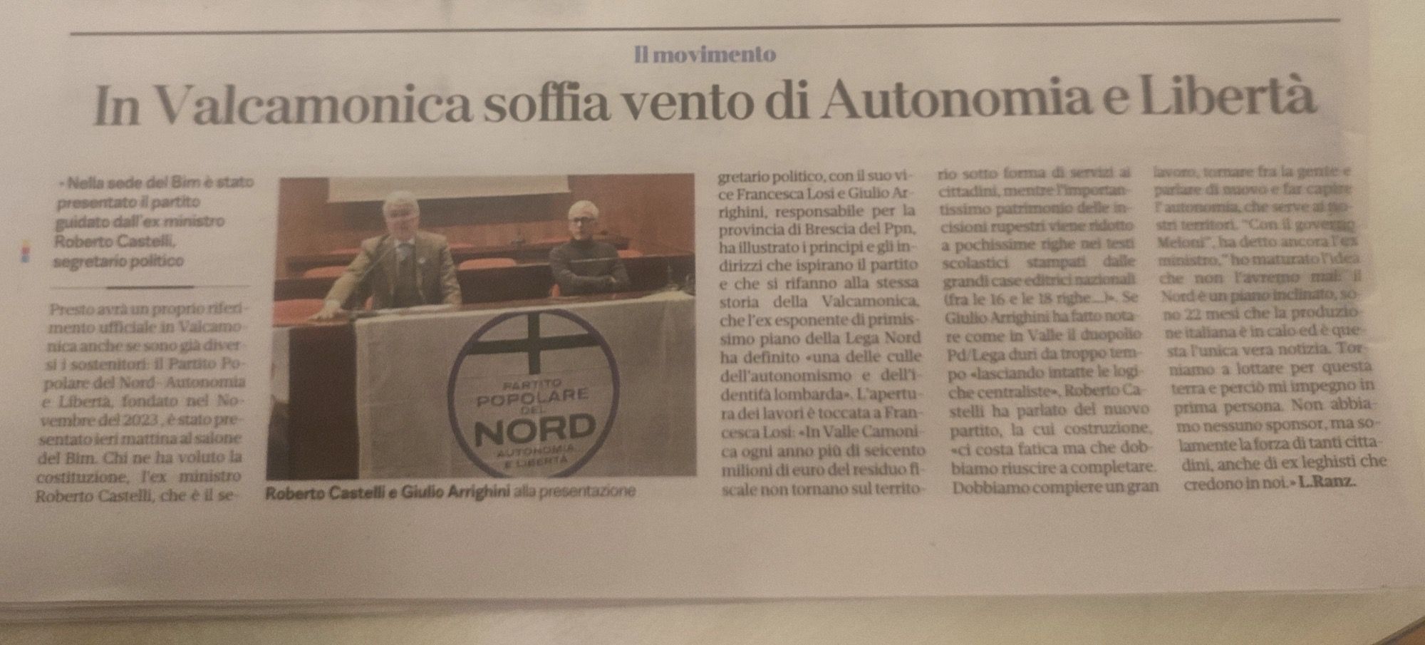 ANNO 2025 PARTITO POPOLARE DEL NORD A. e L